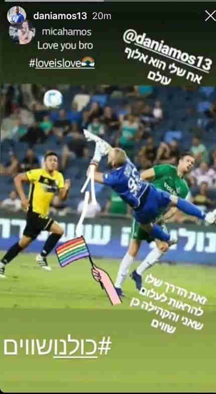 מעטים שמו לב לעניין, אך מלבד סרט הקפטן על ידו של עמוס, ענד השוער סרט בצבעי הקשת, כאות תמיכה בקהילה הגאה. לאחר המשחק העלה אחיו של עמוס, מיכה, פוסט עם הבעת תודה על התמיכה שקיבל. כידוע, בכדורגל הישראלי, ובכלל ענפי הספורט, היחס לקהילה הגאה אינו פתוח במיוחד, ואקט כזה של קפטן בקבוצה מליגת העל, הוא בהחלט ראוי לציון. בימים בהם חוק הפונדקאות עומד במרכז השיח הציבורי וגורם להרבה מתח. חשוב לזכור שהבעת עמדות היא לגיטימית ואף חשובה, גם אם מדובר בדמות ציבורית שאינה קשורה לפוליטיקה.